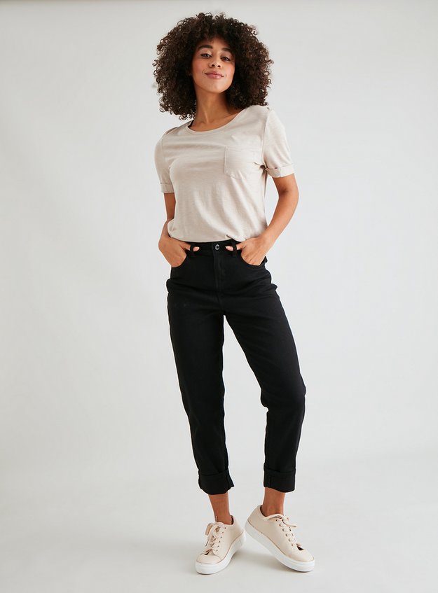 These jeans take a hint-of-stretch fabric and a relaxed fit then throw in a mid-rise waist and a choice of washes. As stylish as they are comfortable a pair of girlfriend jeans belongs in every womans closet. Model is 59 and wears a UK size 8 Product composition.