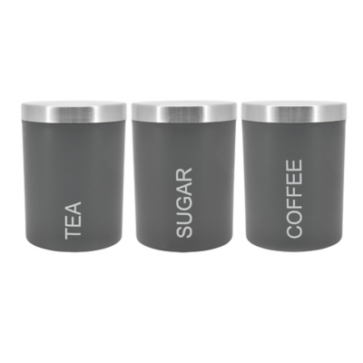 Canisters sets Product List. Tower T826091GRY Empire Set of 3 Canisters Grey This set of 3 storage canisters is perfect for your tea coffee and sugar Each canister features a stylish grey body complimented by a mirrored finish lid with a unique V shaped pattern and topped off with polished elegant bronze accents around the base. Buy top selling products like Artisanal Kitchen Supply.