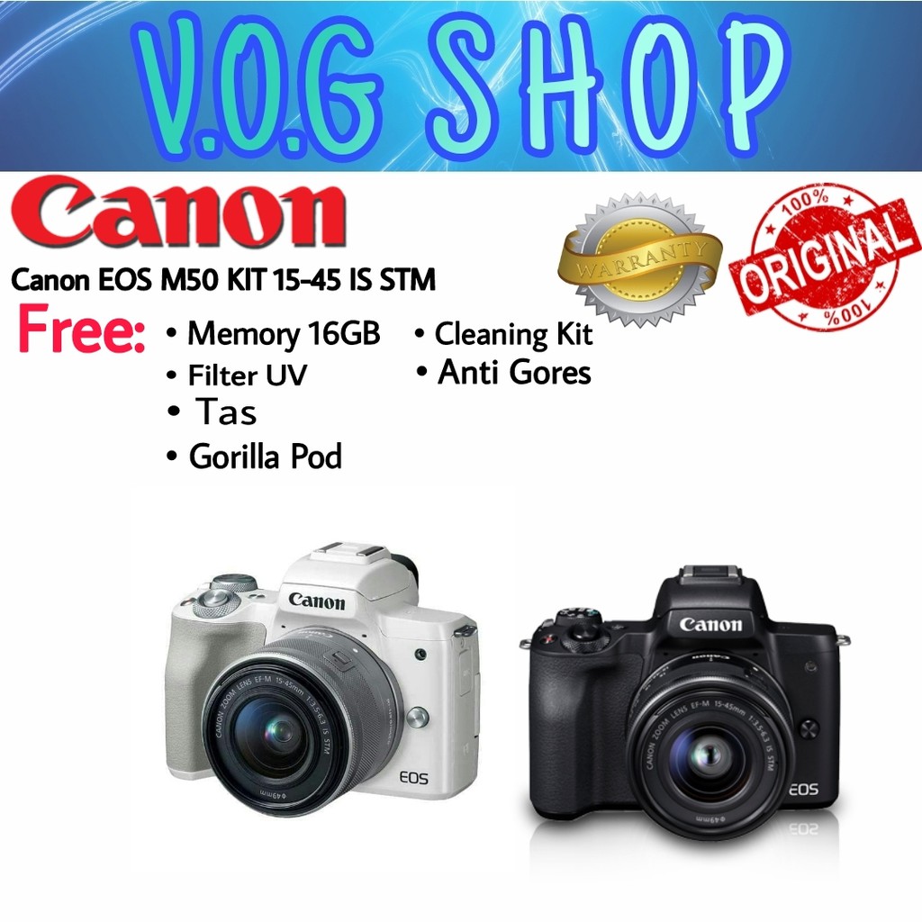 Canon Eos M50 Kit 15 45mm Is Stm Wifi Original Paket Bonus Lengkap Kamera Youtubers Vlog Shopee Indonesia