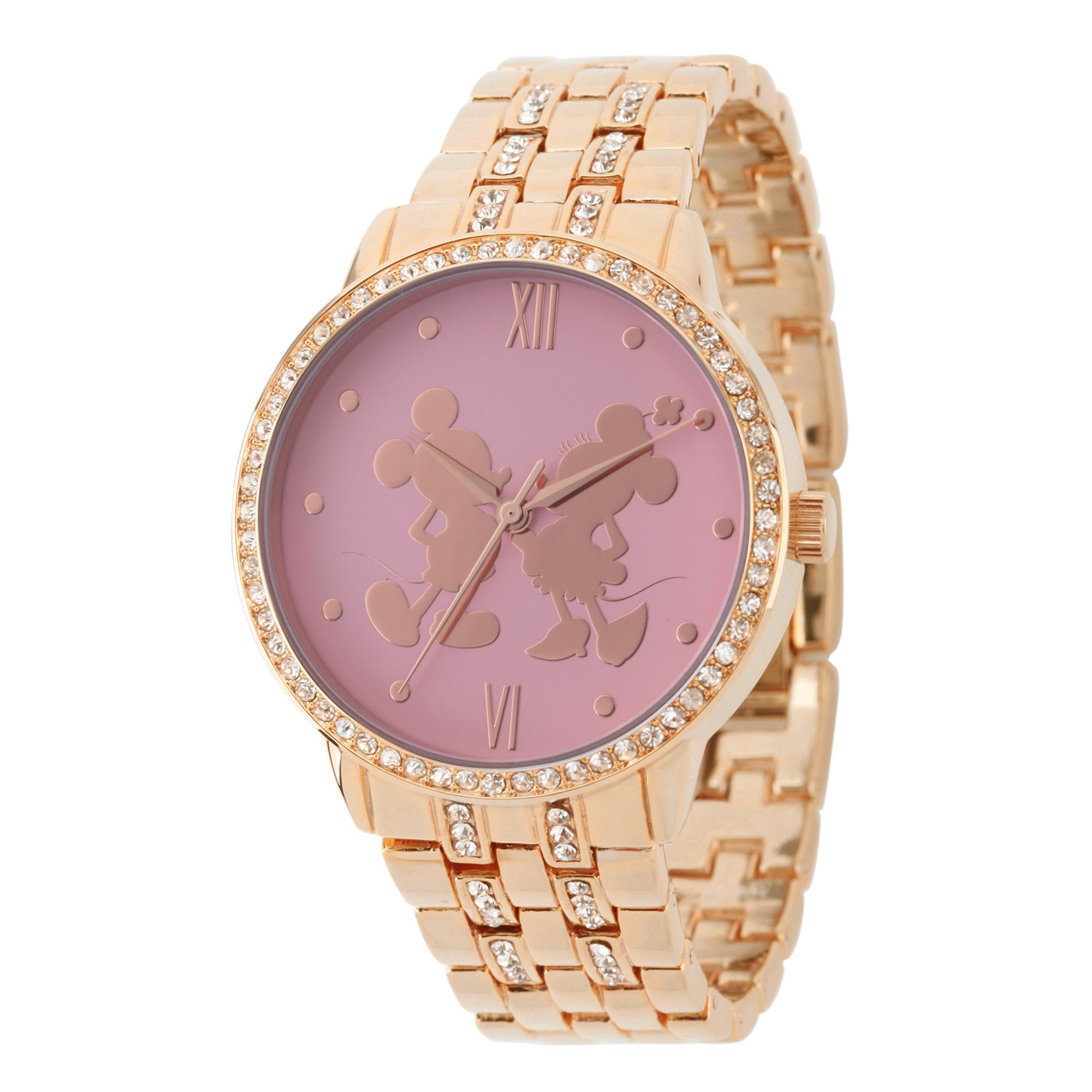 Fingerhut Disney Mickey And Minnie Mouse Women S Rose Goldtone Rhinestone Watch