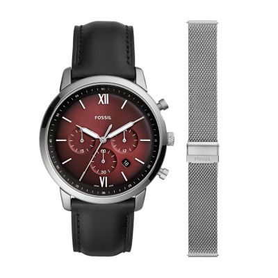 Neutra Chronograph Black Leather Watch And Interchangeable Bracelet Box Set Fs5600set Watch Station