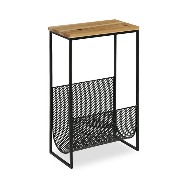 Kate And Laurel Galen Accent Side Table And Magazine Rack With Natural Wood Top And Black Metal Base Walmart Com Walmart Com