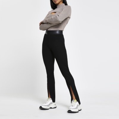 Petite Black Ponte Zip Split Hem Leggings River Island