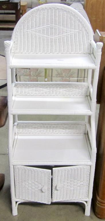 Shelf Measures 24 5 Wide X 12 Deep X 76 Tall Condition This Vintage Wicker She White Wicker Bedroom Furniture Wicker Bedroom Furniture White Wicker Bedroom